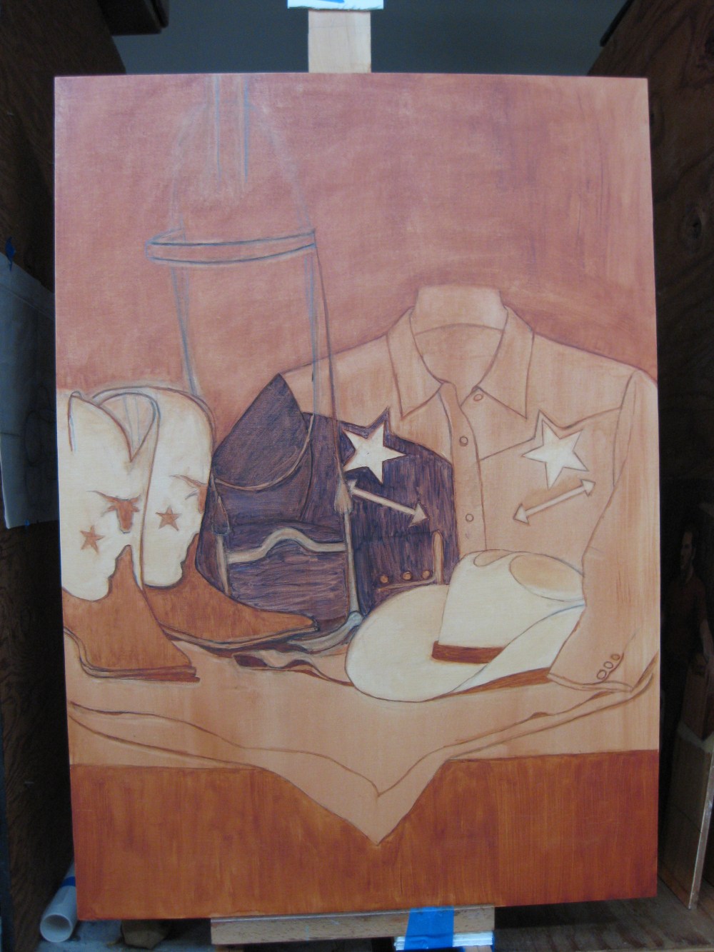 Cowgirl All American - step 2b start blocking color in |